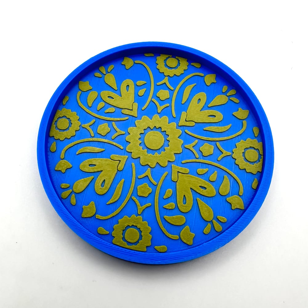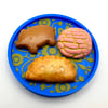 4 magnets. Qty 1) 2.75" platter Qty 1) 1.5" Cochito Qty 1) 1.5" Empanada Qty 1) 1" Concha. All parts are 3D printed. Pastries are hand painted. Blue and olive platter. 4 designs to choose from.